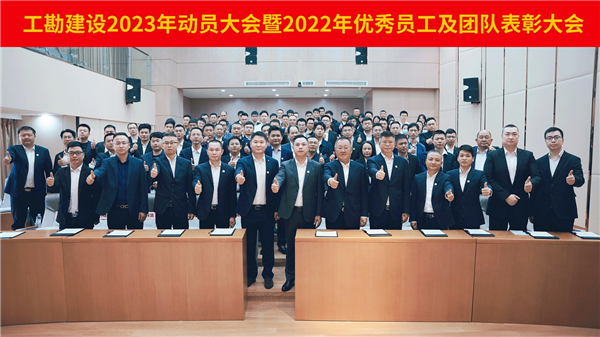 春来万象新,奋斗正当时。2月3日,工勘建设隆重举行“2023 年动员大会暨2022 年优秀员工及团队表彰大会”。工勘建设集团董事长林浩平、总裁朱峰等公司高管及公司全体员工参与本次会议。