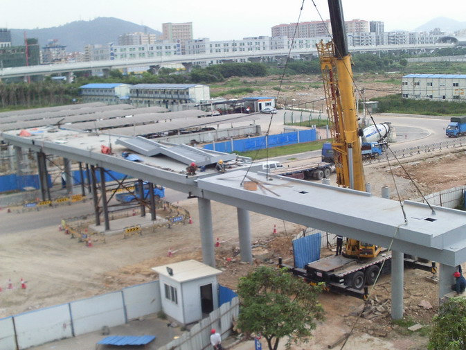 深航基地过街人行天桥工程为跨机场航站四路连接深航基地A区和B区的人行天桥,钢箱梁最大跨度36m,工程造价1010万元。